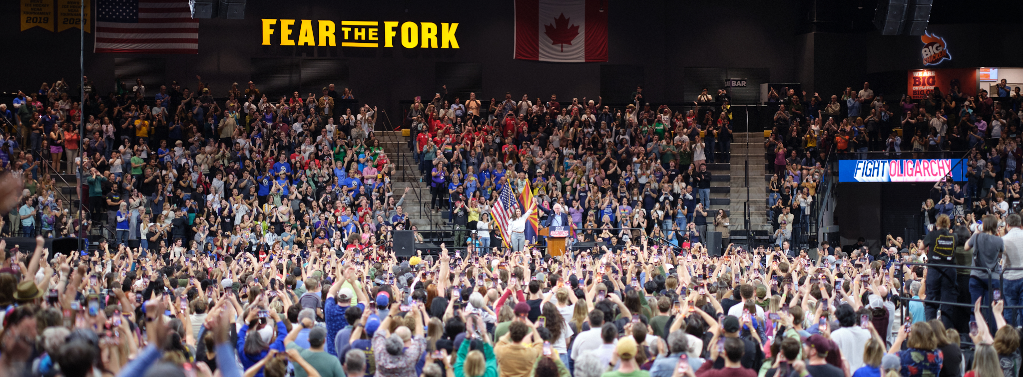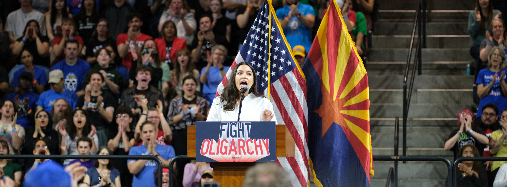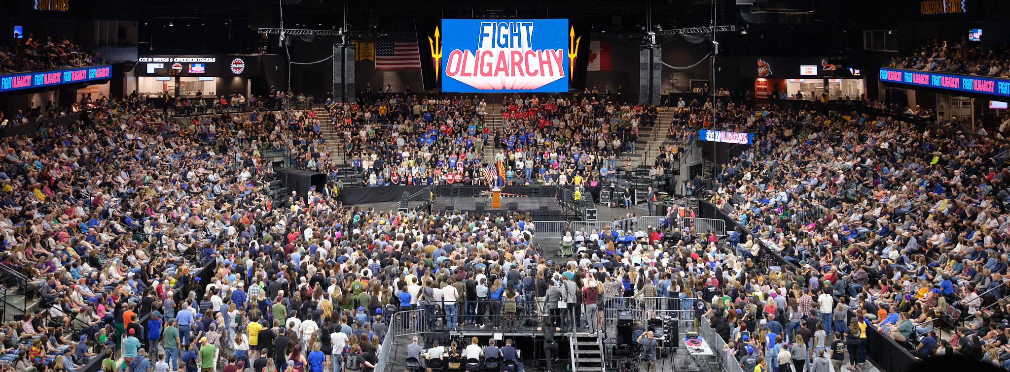 Last night, thousands of Arizonans gathered at Mullett Arena on Arizona State University’s campus for the Fight Oligarchy rally with Senator Bernie Sanders and Representative Alexandria Ocasio-Cortez. The arena hit capacity, with thousands more gathered outside.