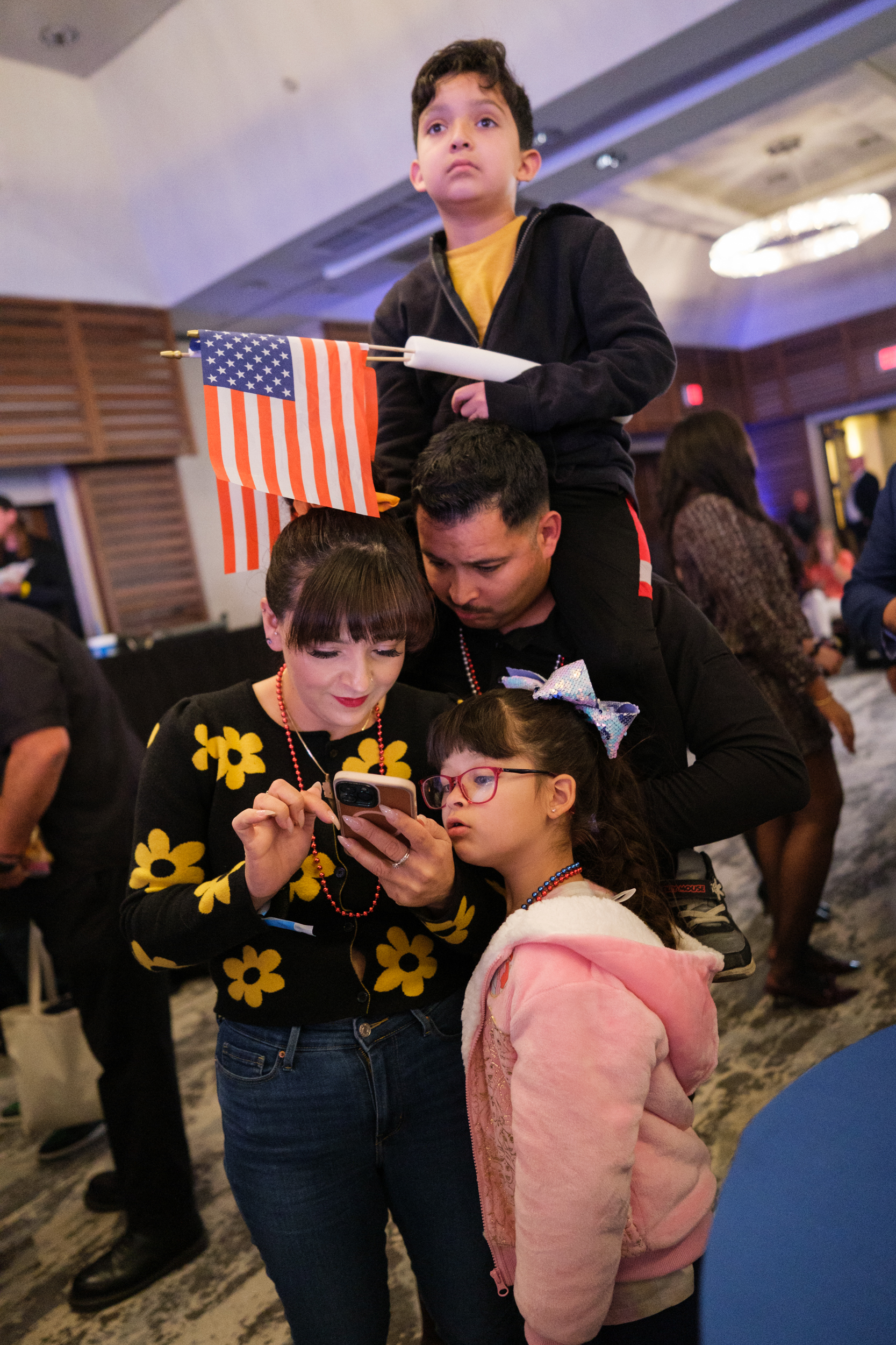Jose Martinez and Tanairí Ochoa-Martinez Check Election Results with Their Children